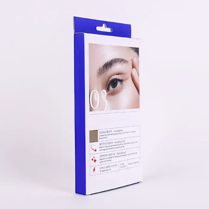 Disse trykte Hang Tab-kasser er designet og produceret af Doyoupacks til et Market Beauty Brand, som har en stærk tilstedeværelse i massemarkedsdetailkanaler. Da vores fabrik oprindeligt designede emballagestrukturen, overvejede vi dens salgsscenarier, og produktet indeni er en pen med farvet øjenbryn. De tilpassede hængende detailkasser er det bedst egnede udvalg, fordi det er velegnet til at blive vist hængt fra en krog i detailkæder, herunder apoteker og skønhedsfokuserede butikker. Derudover gør den stabile bæreevne og det dobbelte åbningsdesign den ideel til emballering af lette sæt med flere elementer, såsom penne med farvetone til øjenbryn.